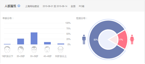 人群畫像也比較好理解。一是顯示各區(qū)域?qū)﹃P(guān)鍵詞的關(guān)注度,在就是關(guān)注關(guān)鍵詞的性別分布。